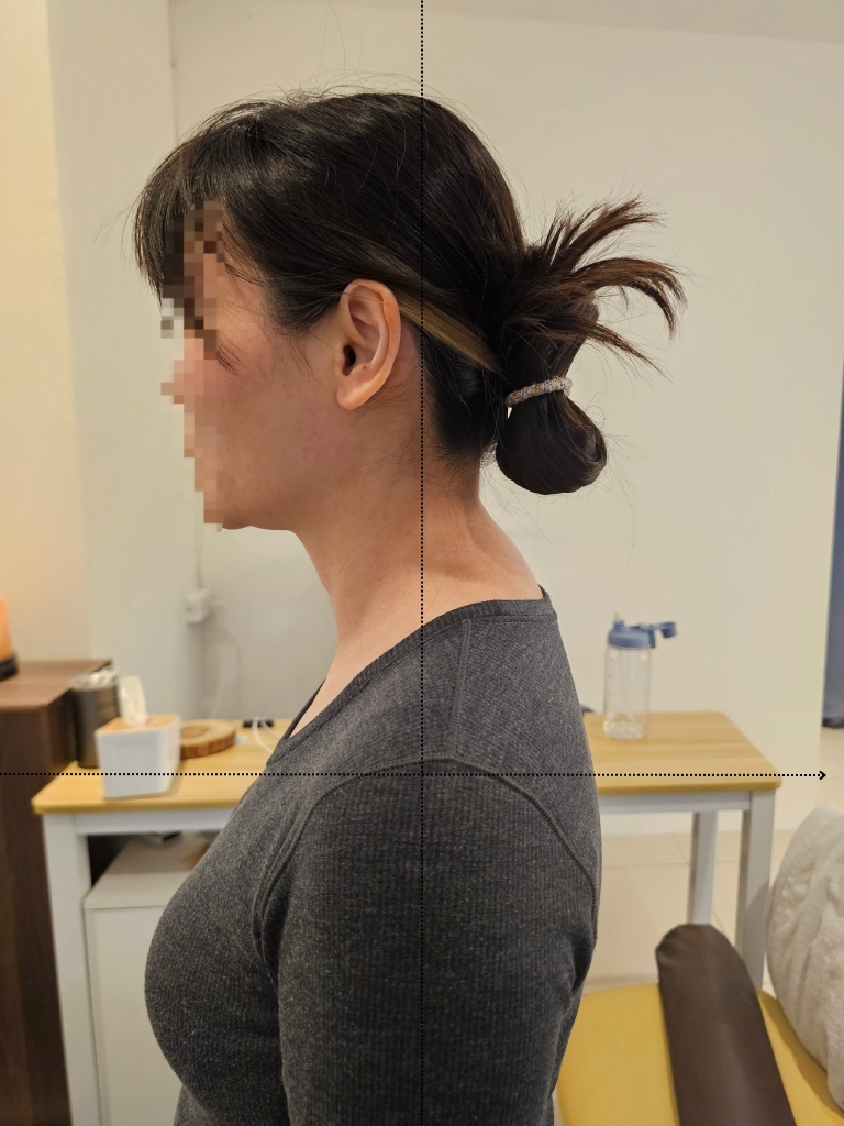「長時間辦公、滑手機,容易讓頭部前引、肩頸緊繃。 透過手法放鬆與動作引導,協助客戶改善肩頸排列,減輕頸部負擔,讓姿態更加輕盈自然。